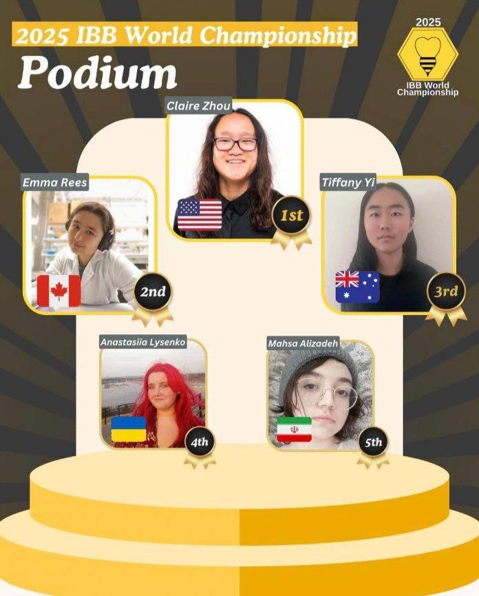 در تازه‌ترین اعلام رسمی مسابقات IBB World Championship 2025، نتایج نهایی رقابت جهانی دانش علوم اعصاب منتشر شد و مهسا علیزاده، شرکت‌کننده توانمند کشورمان ایران، موفق شد در میان شرکت‌کنندگان از سراسر جهان، رتبه پنجم را کسب کند.